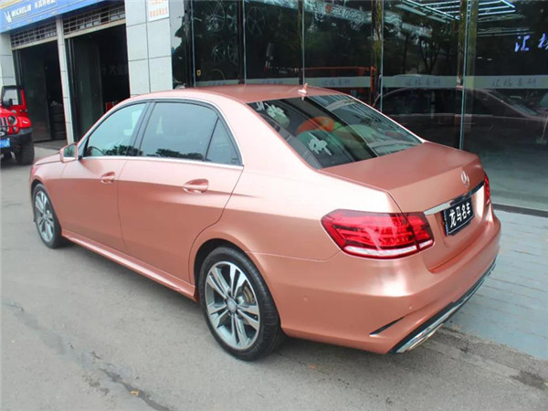 奔馳E級(jí)全車改色貼膜,電光玫瑰金。